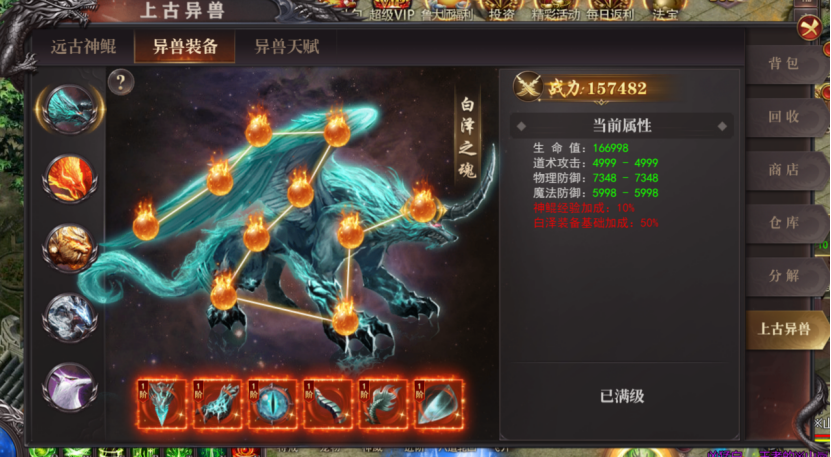 (1)升星道具:使用对应异兽灵魄可以进行升星