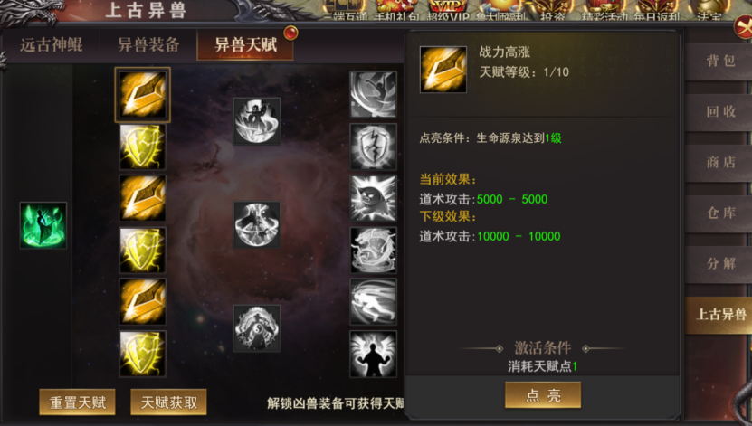 (3).天赋点获取:每收集一件异兽装备可获得天赋点*1