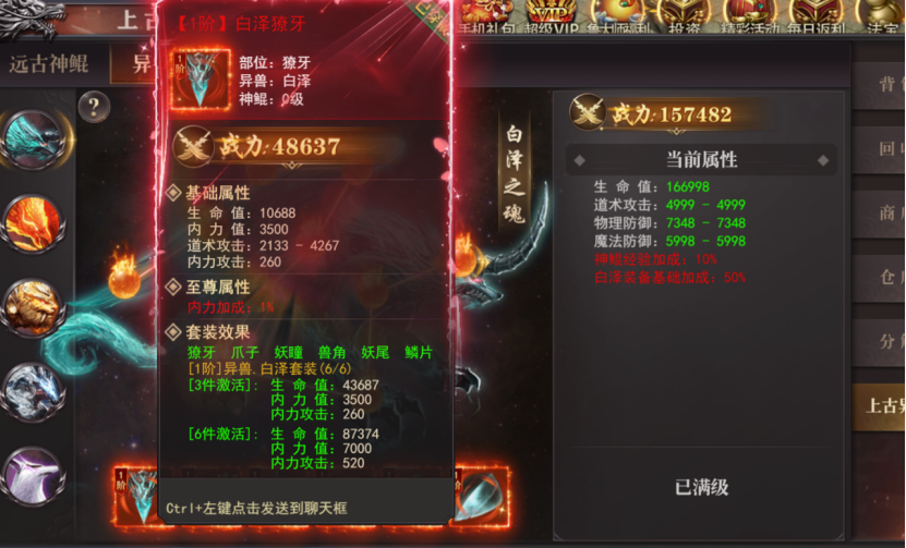 (3).装备合成:通过神鲲喂养获取异兽碎片,碎片可以合成异兽装备