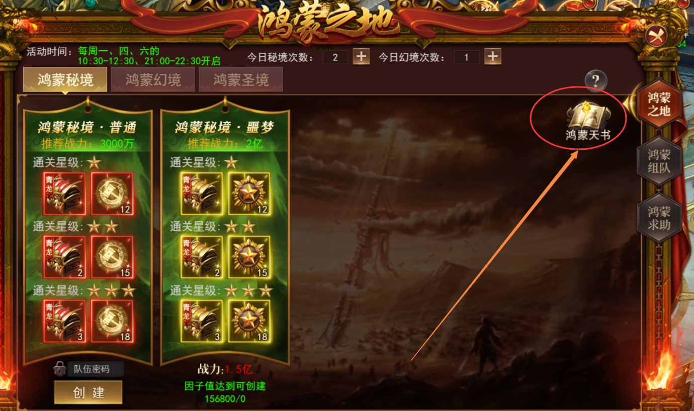 (1)图标:打开鸿蒙之地的活动图标,点击页面的鸿蒙天书