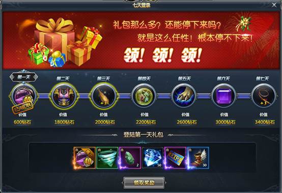 【活动内容】:每天登录有超豪华战力大礼,40超级经验药,强力宠物技能,50级橙色传奇衣服,还有各种进阶系统神技,每天登录稳步提升战力!