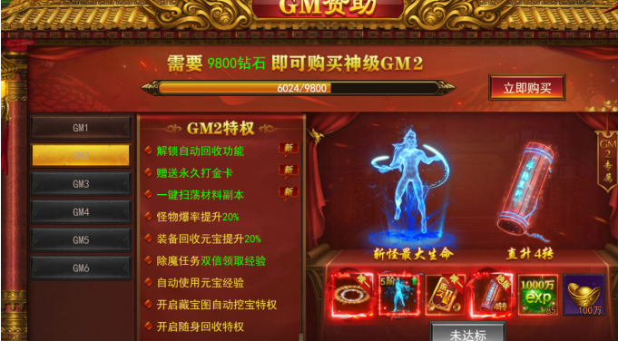 有我们《维京传奇》里,GM等级是要靠钻石来购买的,而在游戏前期,我们就有好几种种方式获得钻石,充值,首杀,爬塔,打金猪,装备回收等。充值咱们不说,首杀,爬塔,打金猪我们都需要积极参与。