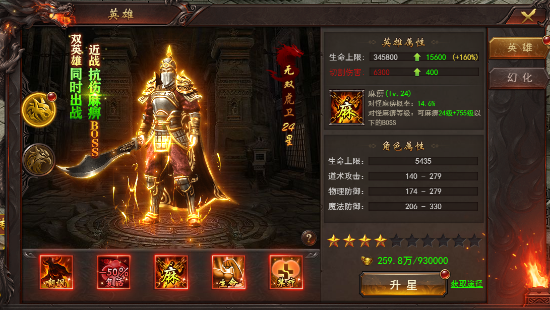 游戏内角色达到110级完成对应的主线任务可以激活英雄系统,全名赞助98元可以获得鹰卫激活卡,双英雄同时出战,近战抗伤麻痹boss,远程输出爆炸伤害。对怪麻痹等级=角色麻痹等级+宠物麻痹等级+幻化增加麻痹等级。