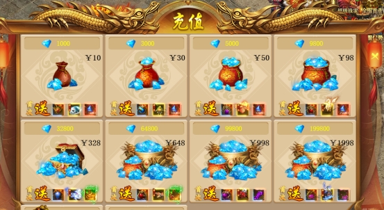 充值改版,新版充值是赠送一些道具跟特权
