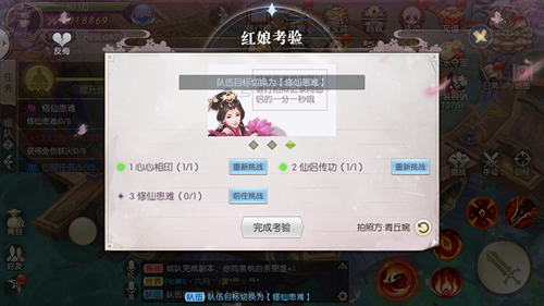 第二步是【红娘考验】,仙侣两人需要组队完成3个副本,不用担心,这3个副本都不会很难的哦。