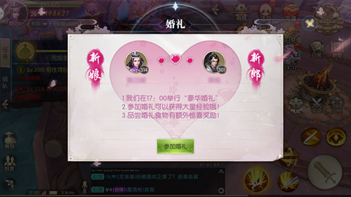 在婚礼开始时,服务器内的玩家都会在右上角收到婚礼的提醒,有请柬的玩家可以点击进入婚礼