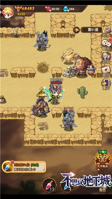 游戏整体的画风偏向卡通Q萌,色调也相对的清晰明丽,玩家在地牢中探索的时候,虽然现象丛生,但是整体的背景色调却十分清新,也不至于一直非常的暗,所以本作在受众群体上可能会有一部分女性玩家的青睐。这种画风也更加的讨喜,在怪物和职业的描绘上,也下足了功夫,人物的动作与怪物的形态都活灵活现,同时技能的特效展示方面相对传统不重视这部分的游戏来说,也有比较大的提升,满屏的技能特效,打斗更加的刺激和燃。